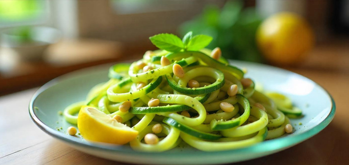 Lehký a zdravý pokrm plný chuti, ideální pro rychlý oběd nebo večeři. Cuketové špagety jsou nízkokalorickou alternativou klasických těstovin a v kombinaci s domácím bazalkovým pestem vytvoří svěží letní jídlo během pár minut.