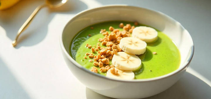 Tato smoothie bowl je plná vitamínů, minerálů a vlákniny. Kombinace banánu a čerstvého špenátu dodá tělu potřebné živiny a příjemně nastartuje váš den. Navíc je hotová během pár minut a skvěle chutná.